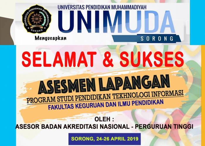 Sorong | Program studi Pendidikan Teknologi Informasi, Fakultas Keguruan dan Ilmu Pendidikan Universitas Pendidikan (UNIMUDA) Muhammadiyah Sorong siap divisitasi dalam rangka asesmen lapangan oleh Asesor dari Badan Akreditasi Nasional – Perguruan Tinggi (BAN-PT).