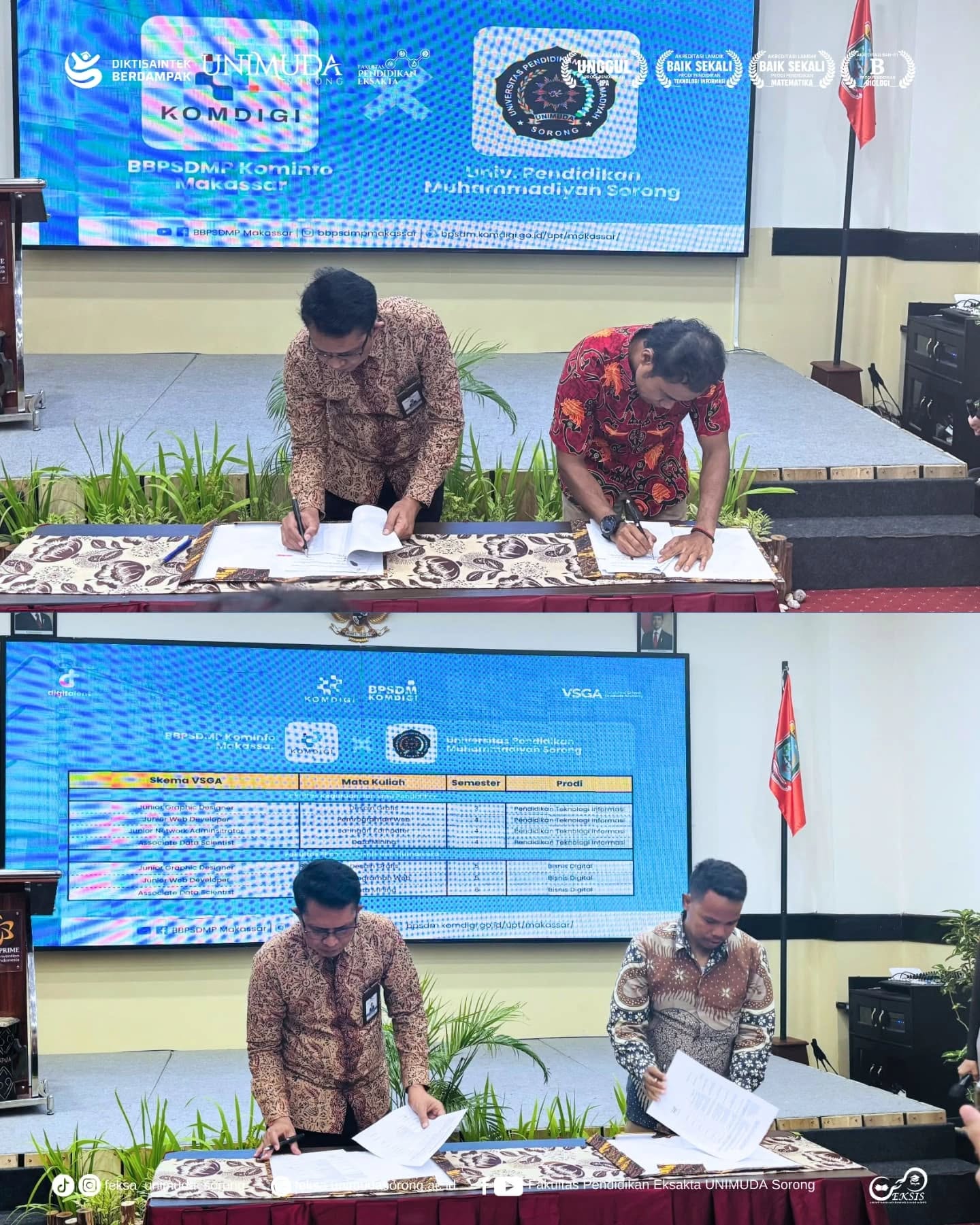 Sorong, 15 Agustus 2025 — Fakultas Pendidikan Eksakta Universitas Pendidikan Muhammadiyah (UNIMUDA) Sorong melalui Dekan, secara resmi melakukan penandatanganan Perjanjian Kerja Sama (PKS) dan Memorandum of Understanding (MoU) dengan Balai Besar Pengembangan Sumber Daya Manusia dan Penelitian (BBPSDMP) Kominfo Makassar.